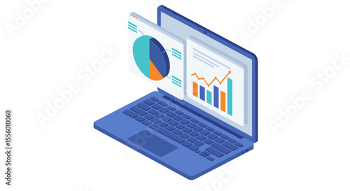 Isometric vector illustration of data analysis on a laptop for business design