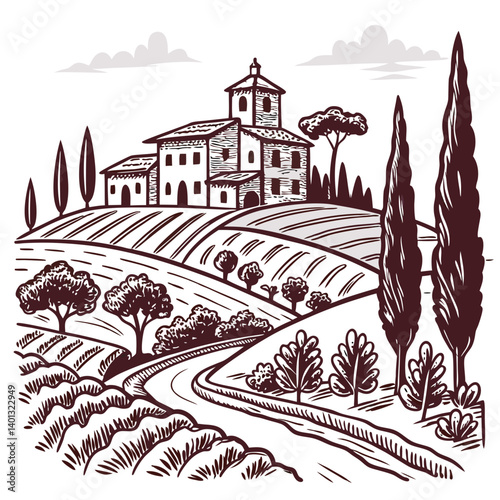 Italian landscape set, vector hand drawn doodle