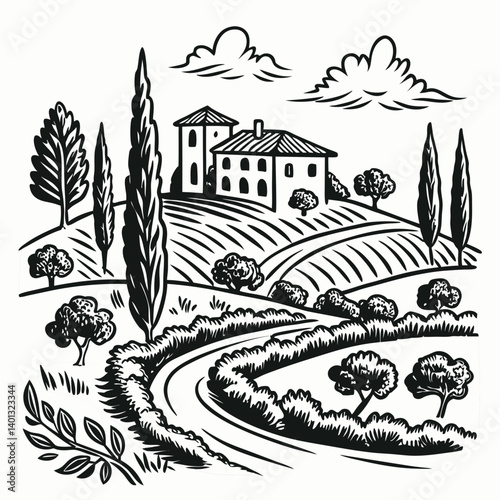 Italian landscape set, vector hand drawn doodle