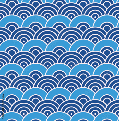 Japanese Circle Ocean Wave Vector Seamless Pattern