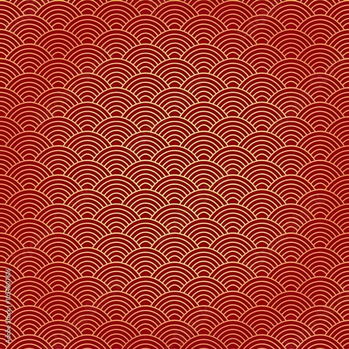Japanese-Inspired Red and Gold Wave Pattern
