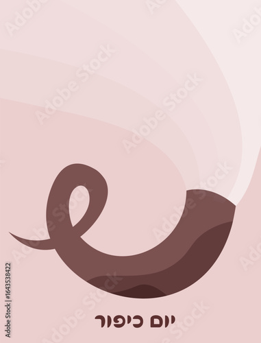 Jewish horn , a shofar, symbol of Jewish holiday Yom Kippur. Yom Kippur in Hebrew.