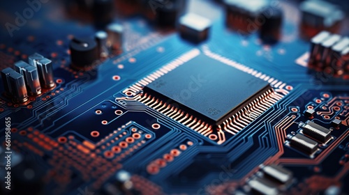 Journey into the Digital Realm: Macro View of Circuit Board Components, Unraveling the Complex Layers of Innovation. Generative AI
