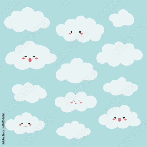 Kawaii Cute smiling cloud on Blue background. vector illustration.