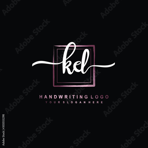 KD Initial handwriting logo design with brush box lines dark pink color gradation. handwritten logo for fashion, team, wedding, luxury logo.