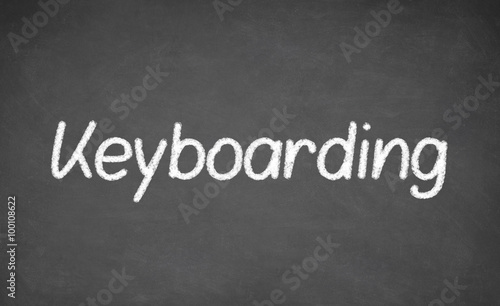 Keyboarding lesson on blackboard or chalkboard.