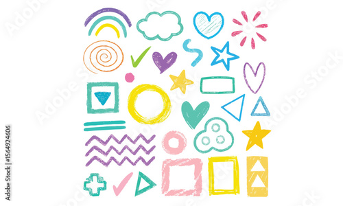 Kid crayon doodle set vector