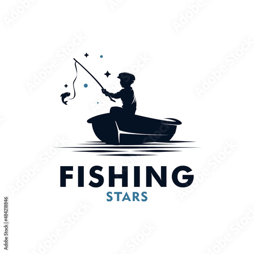 Kid fishing logo design vector