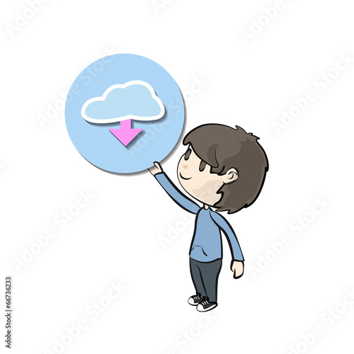 Kid with icon web over white background
