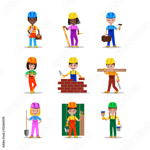 Kids builders characters vector illustration
