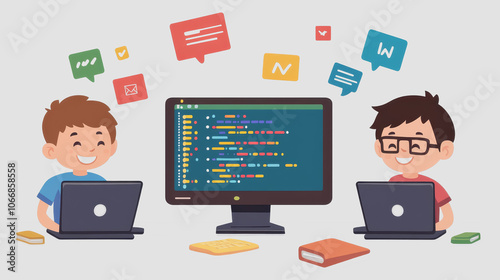 Kids Learning Programming with Laptops and Code