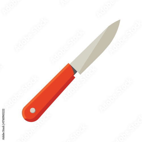 Kitchen knife with orange handle on white background