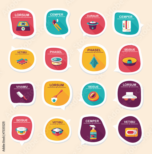 Kitchenware bubble speech flat banner design background set, eps
