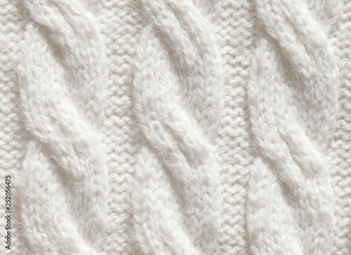 Knitting from woolen threads. Texture for the New Year's postcard. White background for various purposes.