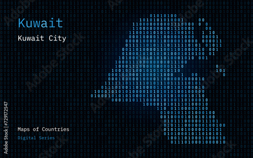 Kuwait Map Shown in Binary Code Pattern. TSMC. Matrix numbers, zero, one. World Countries Vector Maps. Digital Series
