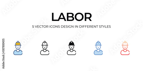Labor Icon Design in Five style with Editable Stroke. Line, Solid, Flat Line, Duo Tone Color, and Color Gradient Line. Suitable for Web Page, Mobile App,UI,UX, and GUI design