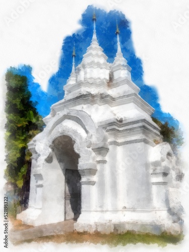 Landscape and scenery of the Ancient Architecture Council in Chiang Mai and tourist attractions of Thailand watercolor style illustration impressionist painting.