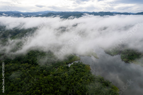 Landscape of Morning Mist with Mountain Layer at north of Thailand. mountain ridge and clouds in rural jungle bush fores