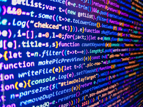 Language web pages, computers, network, web. Developing programming and coding technologies. Website codes on computer monitor. Data optimization. Programmer software workplace. Program