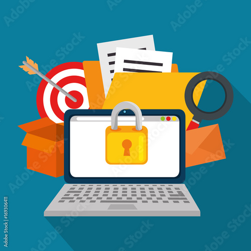 Laptop and icon set of Cloud computing and services theme Vector illustration