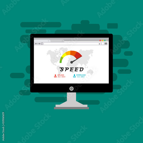 Laptop and internet speed. Loading page Seo and Development with Speedometer smartphone Technology
