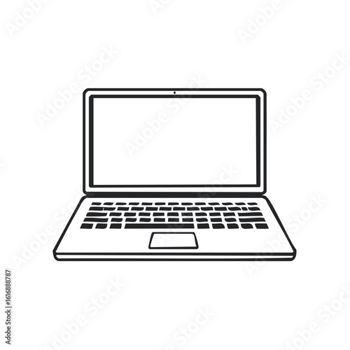 Laptop Computer Line Drawing, Open Notebook Simple Vector Illustration, Modern Device