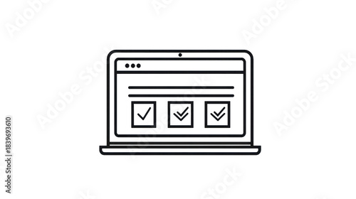 Laptop computer with check marks on screen online survey digital checklist