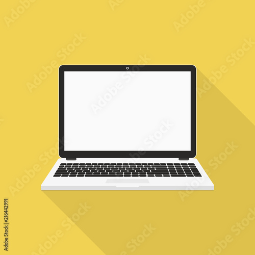 Laptop flat icon, long shadow design. Vector illustration.
