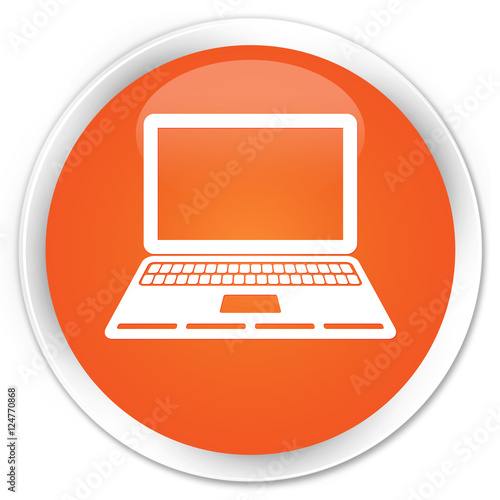 Laptop icon orange glossy round button