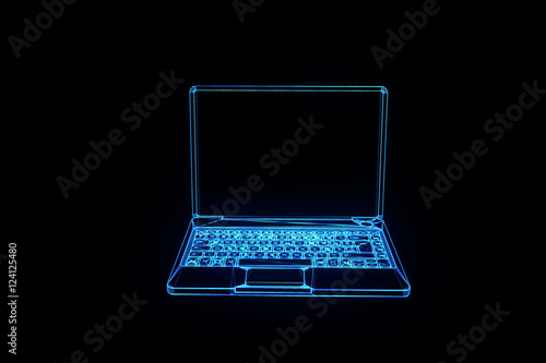 Laptop in Hologram Wireframe Style. Nice 3D Rendering