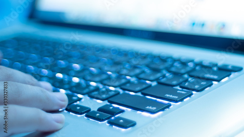 Laptop keyboard with lights.Keyboard close up.shallow focus effect.