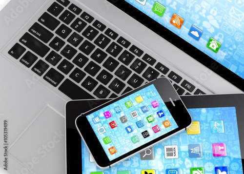 Laptop, phone and tablet pc.