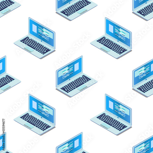 Laptop seamless flat pattern for background with 3d effect. Material design EPS