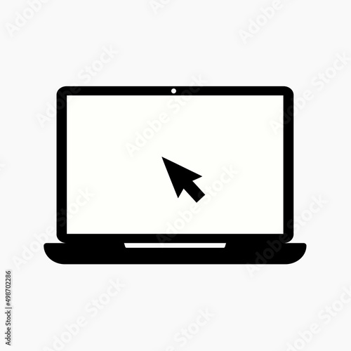 Laptop vector icon. Computer with click mouse pointer symbol isolated on white background.