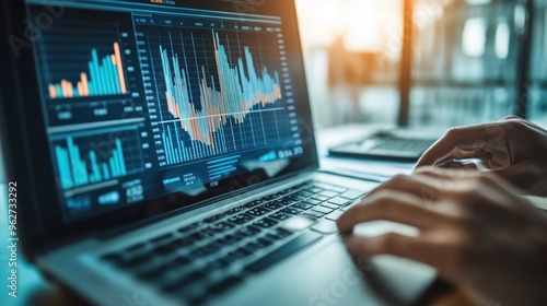 Laptop with Charts and Graphs