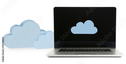 Laptop with clouds. Cloud computing concept