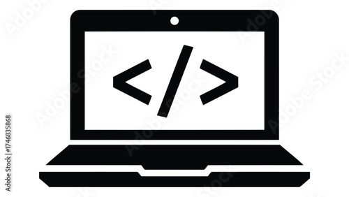 Laptop with code notebook,code,symbol,programming,software,development,technology,digital,screen symbol icon isolated on white background