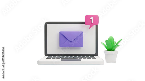 Laptop with Email Notification and Plant