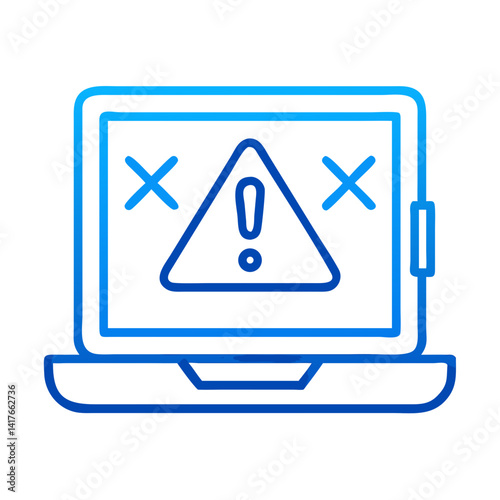 Laptop with Error Icon Representing Coding Bug and Software Issue