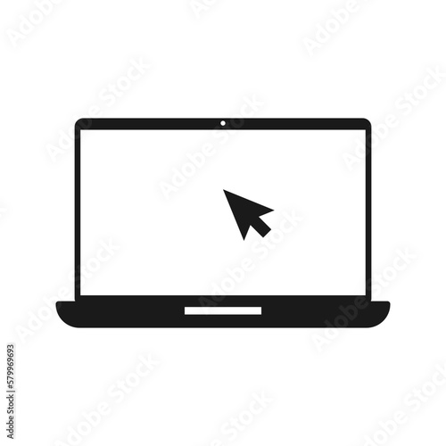 Laptop with pointer or cursor icon isolated. Notebook screen template. Display with clicking mouse on white background.