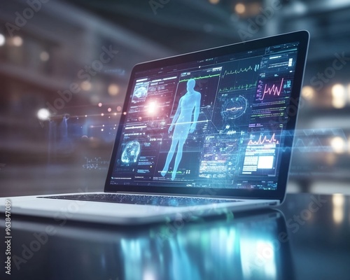 Laptop with telemedicine platform doctor reviewing patient data remotely