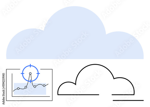 Large cloud shape with a data graph and focus icon, symbolizing analytics, cloud computing, and technology. Ideal for innovation, automation, efficiency, futuristic concepts, networking data