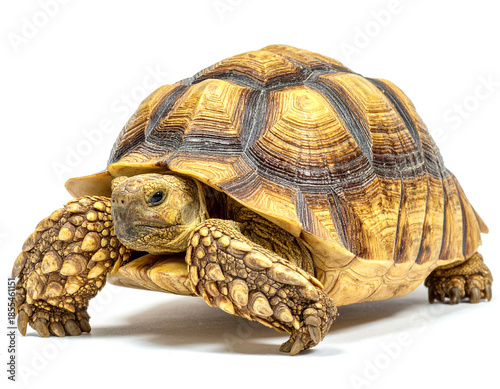 Large Desert Tortoise Crawling Isolated On White Background