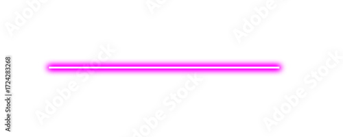 Laser beam and Luminous neon stick isolated, horizontal gradient light line in pink vibrant color. Led neon lamp tube, glowing underline vector for Web banner, border, icon, logo design