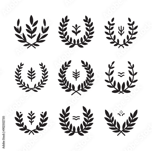 laurel, signs, illustration, icon, logotype, vector, badge, leaf, award, emblem, symbol, design, template, frame, heritage, classic, vintage, graphic, floral, green, nature, tree branch, art, decor, style, retro, elegant, chaplet, branding, identity, creative, monogram, label, success, honour