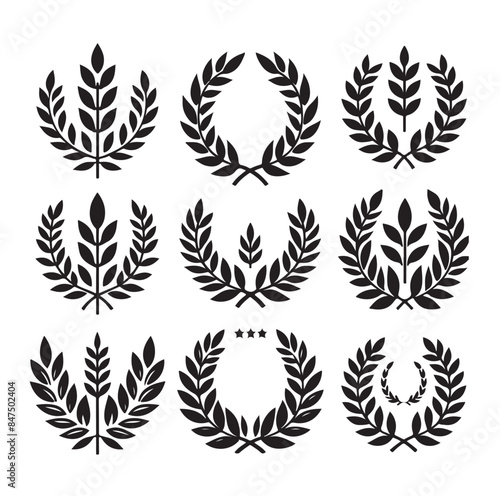laurel, icon, epic, chaplet, victory, heroic, sport, isolated, frame, art, leaf, black, success, signs, logotype, trophy, award, roma, palm, black-and-white, decoration, minimalism, tree branch, element, laurel wreath, luck, insignia, symbol, certain, emblem, label, strict, triumph