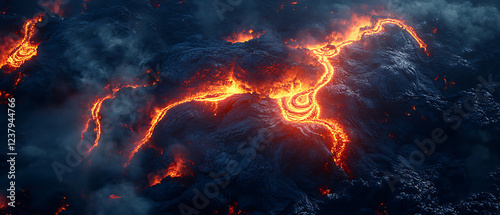 Lava Flow Forming Pi Symbols in Volcanic Landscape at Night