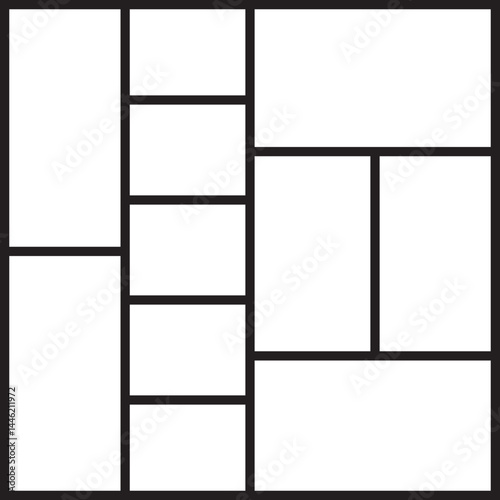 Layout containing three vertical columns each segmented into a set of stacked horizontal rows.