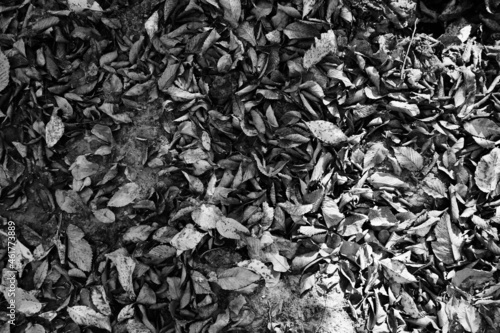 Leaf litter background in black and white.