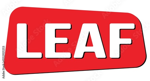 LEAF text on red trapeze stamp sign.